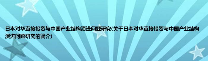 大家好,日本对华直接投资与中国产业结构演进问题研究,关于日本对华直接投资与中国产业结构演进问题研究的简介很多人还不知道,现在让我们一起来看看吧!