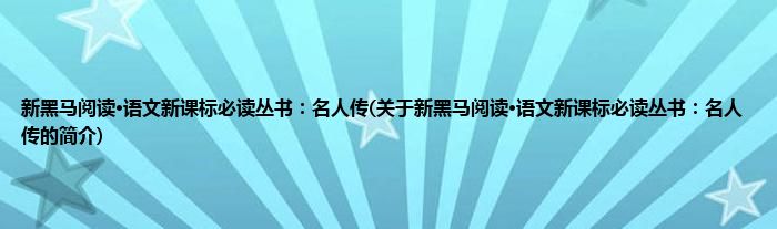 本文关于新黑马阅读·语文新课标必读丛书:名人传的简介就讲解完毕,希望对大家有所帮助。