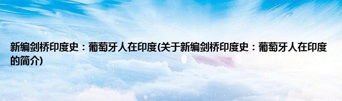 本文关于新编剑桥印度史:葡萄牙人在印度的简介就讲解完毕,希望对大家有所帮助。