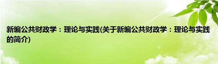 本文关于新编公共财政学:理论与实践的简介就讲解完毕,希望对大家有所帮助。