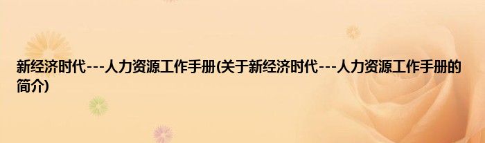 本文关于新经济时代---人力资源工作手册的简介就讲解完毕,希望对大家有所帮助。