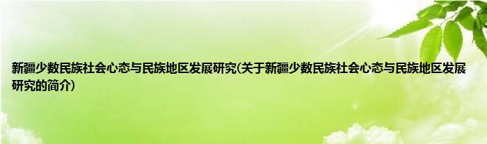新疆少数民族社会心态与民族地区发展研究(关于新疆少数民族社会心态与民族地区发展研究的简介)