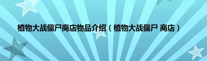 大家好,精选小编来为大家解答以上问题。植物大战僵尸商店物品介绍,植物大战僵尸 商店很多人还不知道,现在让我们一起来看看吧!