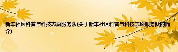 本文关于新丰社区科普与科技志愿服务队的简介就讲解完毕,希望对大家有所帮助。