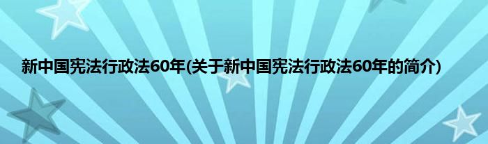 本文关于新中国宪法行政法60年的简介就讲解完毕,希望对大家有所帮助。
