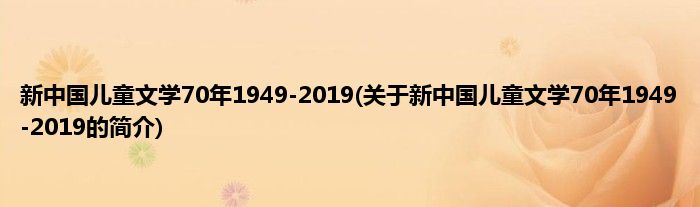 1、 《新中国儿童文学70年1949-2019》是2019年长江少年儿童出版社出版的图书。