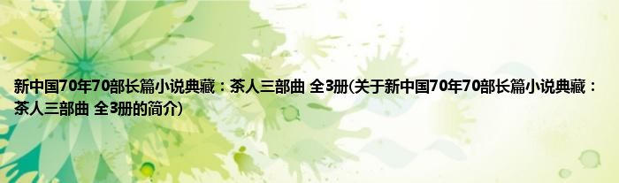 本文关于新中国70年70部长篇小说典藏:茶人三部曲 全3册的简介就讲解完毕,希望对大家有所帮助。