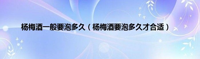 一般杨梅酒要泡一个月左右,一个月左右可以捞出杨梅,时间不要超过三个月。杨梅酒是以新鲜杨梅、冰糖和白酒为原料制成的一种果酒。果香浓郁,口感香甜,保质期比白酒短,一般为6月至1年。