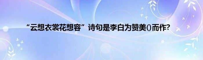 大家好,小科来为大家解答以上问题。“云想衣裳花想容”诗句是李白为赞美()而作?很多人还不知道,现在让我们一起来看看吧!