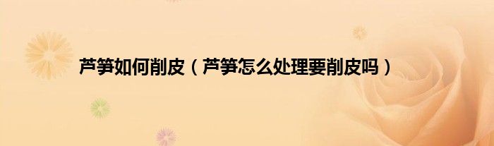 大家好,小科来为大家解答以上问题。芦笋如何削皮,芦笋怎么处理要削皮吗很多人还不知道,现在让我们一起来看看吧!