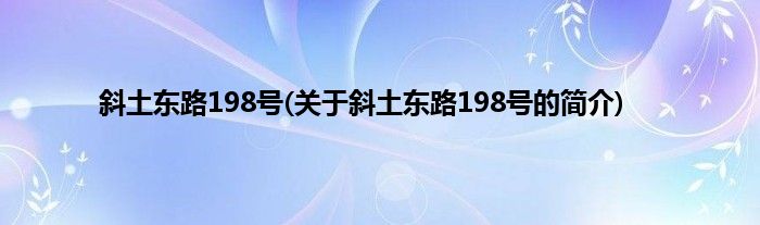 大家好,斜土东路198号,关于斜土东路198号的简介很多人还不知道,现在让我们一起来看看吧!