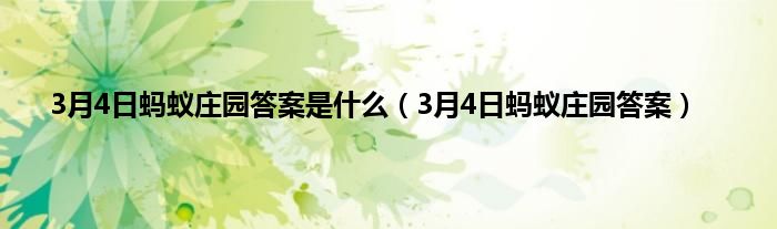 大家好,精选小编来为大家解答以上问题。3月4日蚂蚁庄园答案是什么,3月4日蚂蚁庄园答案很多人还不知道,现在让我们一起来看看吧!