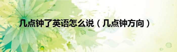 大家好,精选小编来为大家解答以上问题。几点钟了英语怎么说,几点钟方向很多人还不知道,现在让我们一起来看看吧!