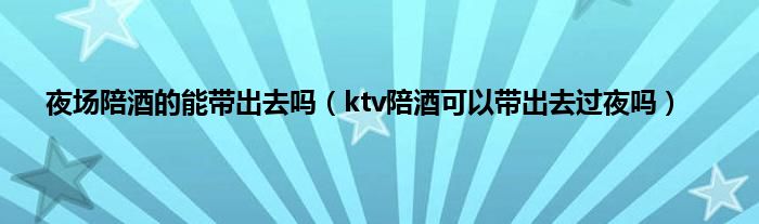 大家好,小常来为大家解答以上问题。夜场陪酒的能带出去吗,ktv陪酒可以带出去过夜吗很多人还不知道,现在让我们一起来看看吧!