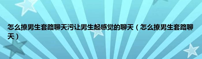 大家好,小常来为大家解答以上问题。怎么撩男生套路聊天污让男生起感觉的聊天,怎么撩男生套路聊天很多人还不知道,现在让我们一起来看看吧!
