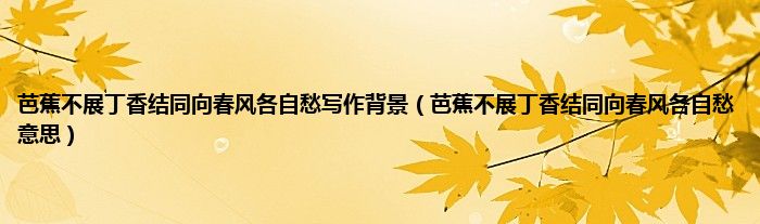 大家好,小常来为大家解答以上问题。芭蕉不展丁香结同向春风各自愁写作背景,芭蕉不展丁香结同向春风各自愁意思很多人还不知道,现在让我们一起来看看吧!