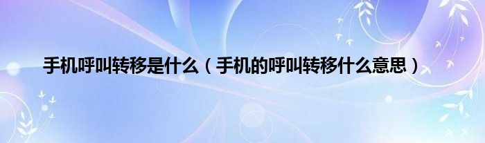 大家好,小常来为大家解答以上问题。手机呼叫转移是什么,手机的呼叫转移什么意思很多人还不知道,现在让我们一起来看看吧!