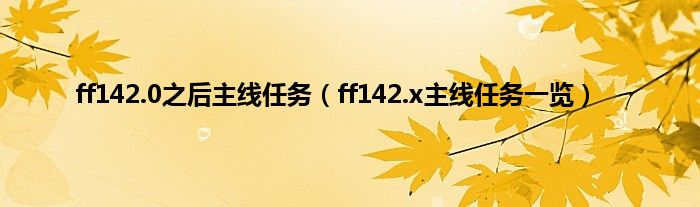 大家好,小常来为大家解答以上问题。ff142.0之后主线任务,ff142.x主线任务一览很多人还不知道,现在让我们一起来看看吧!