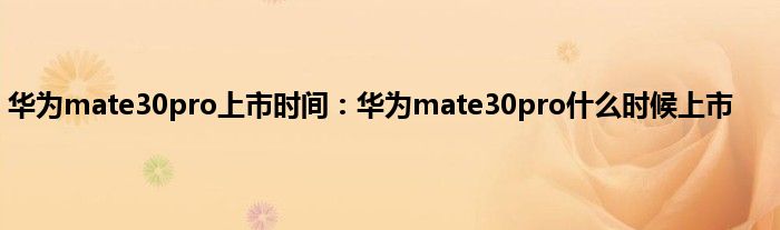 相信通过华为mate30pro上市时间:华为mate30pro什么时候上市这篇文章能帮到你,在和好朋友分享的时候,也欢迎感兴趣小伙伴们一起来探讨。