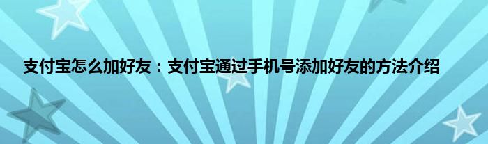 相信通过支付宝怎么加好友:支付宝通过手机号添加好友的方法介绍这篇文章能帮到你,在和好朋友分享的时候,也欢迎感兴趣小伙伴们一起来探讨。
