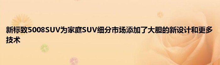 大胆 的新发现标致凭借全新的5008 SUV继续秉承对本能设计的承诺。新款5008 SUV的前端经过重新设计,采用了新的无框格栅,而新的保险杠设计则集成了亮面黑色侧铲和带漆的踏板。顶级GT和GT Premium型号具有自己独特的格栅,可帮助它们进一步脱颖而出。