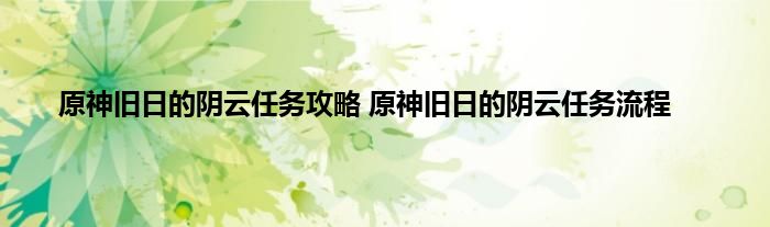 原神旧日的阴云任务怎么做?原神旧日的阴云任务是最近新开启的活动任务,这个任务需要玩家进行一个比较多的步骤才干完成,因此不少的玩家不清晰怎么做。下面就带来了具体的完成方法,希翼大家喜欢。