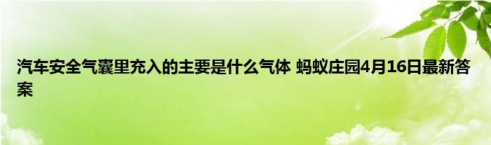 汽车安全气囊里充入的主要是什么气体?蚂蚁庄园4月16日答案已经出来了,问题和汽车有关,大家都知道汽车里会有安全气囊,这次的问题是安全气囊里主要充入的是什么气体,答对可获得奖励,下面就来尾随小编一起来了解一下吧。