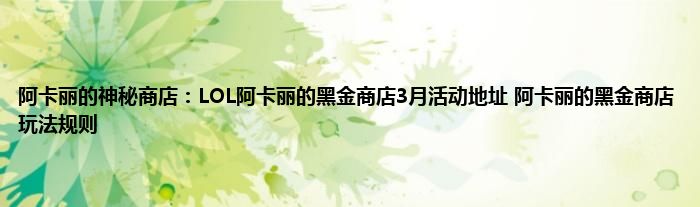今天来聊聊关于阿卡丽的神秘商店:LOL阿卡丽的黑金商店3月活动地址,阿卡丽的黑金商店玩法规则的文章,游戏是很多人的选择,但是游戏玩多了也会身心疲惫,现在就为大家来简单介绍下阿卡丽的神秘商店:LOL阿卡丽的黑金商店3月活动地址,阿卡丽的黑金商店玩法规则,希望对各位小伙伴们有所帮助。