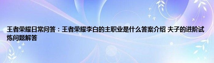 小编今天给各位玩家朋友们带来的是王者荣耀日常问答:王者荣耀李白的主职业是什么答案介绍,夫子的进阶试炼问题解答,有记得的玩家朋友吗?不记得也没有关系,小编已经帮助大家把王者荣耀日常问答:王者荣耀李白的主职业是什么答案介绍,夫子的进阶试炼问题解答找了出来,你只需要动动你的小手就可以轻松知道啦,快来瞧一瞧吧。
