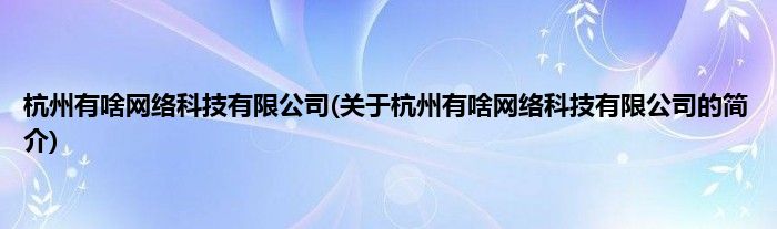 本文关于杭州有啥网络科技有限公司的简介就讲解完毕,希望对大家有所帮助。