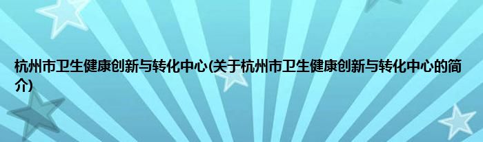 大家好,杭州市卫生健康创新与转化中心,关于杭州市卫生健康创新与转化中心的简介很多人还不知道,现在让我们一起来看看吧!