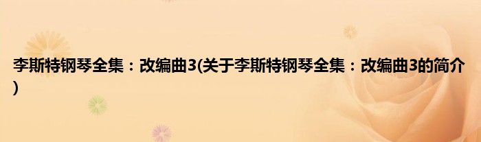 本文关于李斯特钢琴全集:改编曲3的简介就讲解完毕,希望对大家有所帮助。