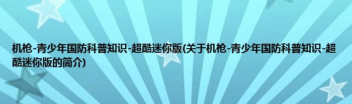 本文关于机枪-青少年国防科普知识-超酷迷你版的简介就讲解完毕,希望对大家有所帮助。