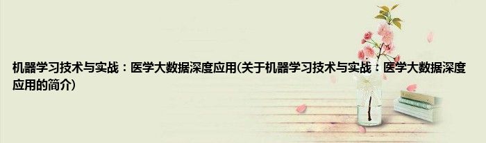 本文关于机器学习技术与实战:医学大数据深度应用的简介就讲解完毕,希望对大家有所帮助。