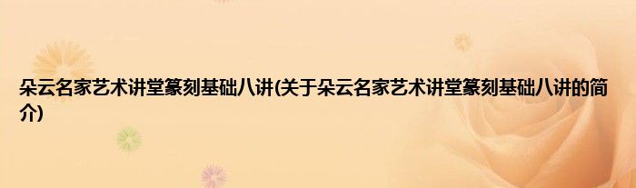 本文关于朵云名家艺术讲堂篆刻基础八讲的简介就讲解完毕,希望对大家有所帮助。