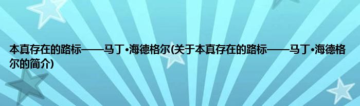 本文关于本真存在的路标——马丁·海德格尔的简介就讲解完毕,希望对大家有所帮助。