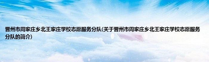 本文关于晋州市周家庄乡北王家庄学校志愿服务分队的简介就讲解完毕,希望对大家有所帮助。