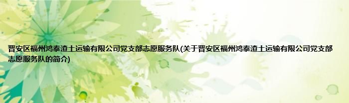 1、 晋安区福州鸿泰渣土运输有限公司党支部志愿服务队是由鼓山镇领导下的志愿团体。