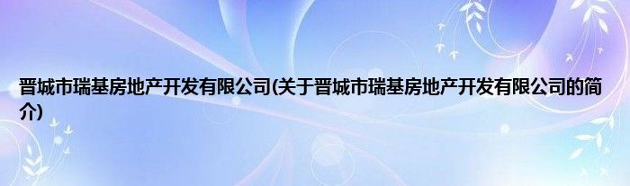 本文关于晋城市瑞基房地产开发有限公司的简介就讲解完毕,希望对大家有所帮助。