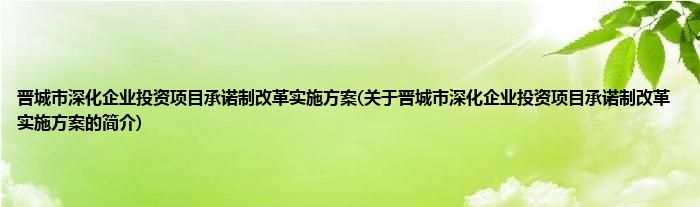 大家好,晋城市深化企业投资项目承诺制改革实施方案,关于晋城市深化企业投资项目承诺制改革实施方案的简介很多人还不知道,现在让我们一起来看看吧!
