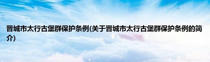 本文关于晋城市太行古堡群保护条例的简介就讲解完毕,希望对大家有所帮助。
