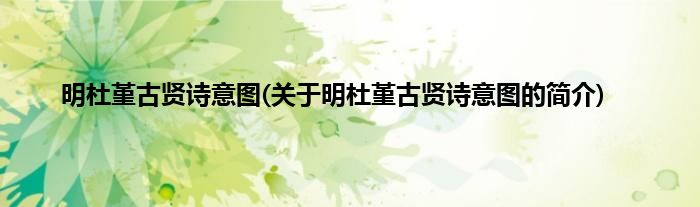 大家好,明杜堇古贤诗意图,关于明杜堇古贤诗意图的简介很多人还不知道,现在让我们一起来看看吧!