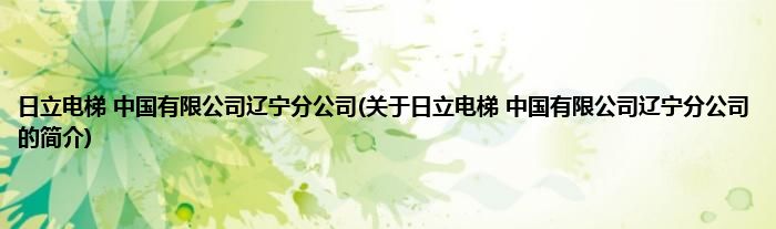 本文关于日立电梯 中国有限公司辽宁分公司的简介就讲解完毕,希望对大家有所帮助。
