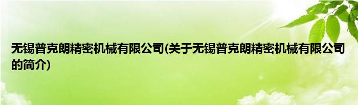 本文关于无锡普克朗精密机械有限公司的简介就讲解完毕,希望对大家有所帮助。