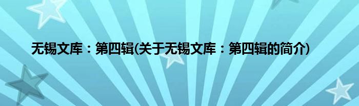 1、 《无锡文库:第四辑》是2011年凤凰出版社出版的图书。