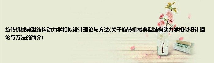 旋转机械典型结构动力学相似设计理论与方法(关于旋转机械典型结构动力学相似设计理论与方法的简介)