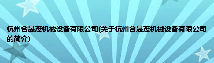 本文关于杭州合晟茂机械设备有限公司的简介就讲解完毕,希望对大家有所帮助。