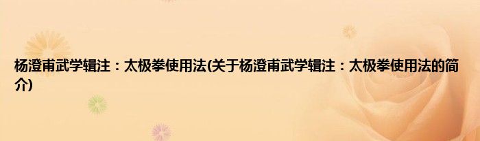 本文关于杨澄甫武学辑注:太极拳使用法的简介就讲解完毕,希望对大家有所帮助。
