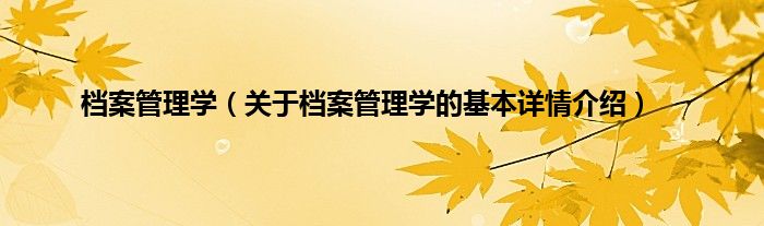 本文关于档案管理学的基本详情介绍就讲解完毕,希望对大家有所帮助。