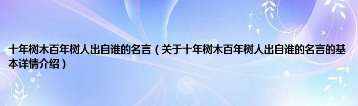 本文关于十年树木百年树人出自谁的名言的基本详情介绍就讲解完毕,希望对大家有所帮助。